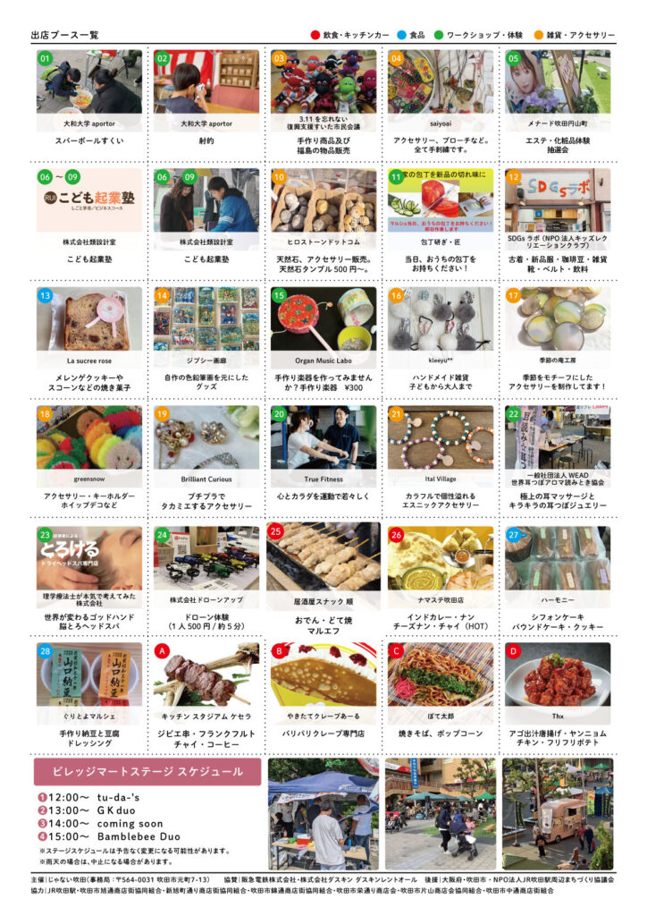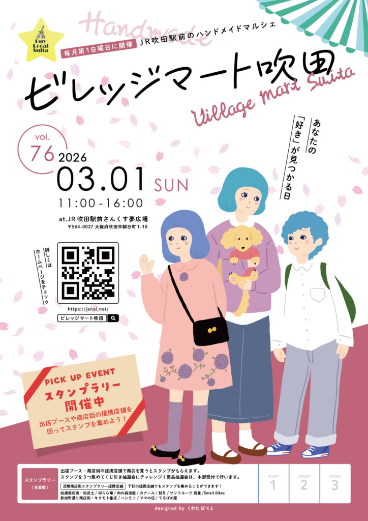 大阪府吹田市で、月に一度(第1日曜日)開催している手づくりマルシェ「ビレッジマート吹田」の詳細は以下からご確認いただけます。